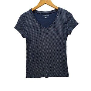 Tommy Hilfiger Womens V-Neck T-Shirt Size S Navy Polka Dots Short Sleeves Casual