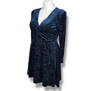 Blue Faux Wrap High Waist Above Knee Velvet Burnout Tommy Hilfiger
