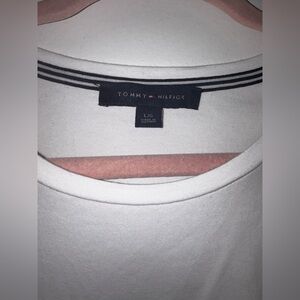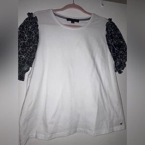 Tommy Hilfiger Women's White and Black Top with Patterned Sleeves