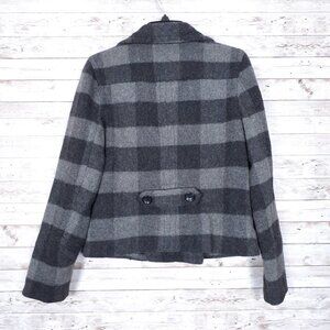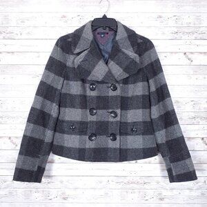 Tommy Hilfiger Womens Wool Cropped Pea Coat M Buffalo Plaid Gray 438