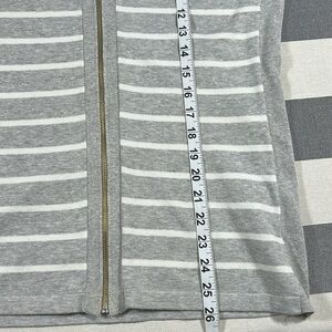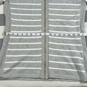 Tommy Hilfiger Womens Zip Jacket L Gray White Striped Cotton Coastal Preppy