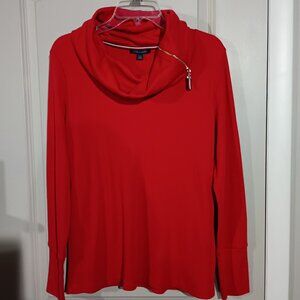 Tommy Hilfiger Women's Zipper Cowl Neck Thermal Red L EUC