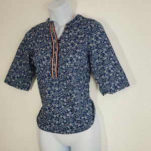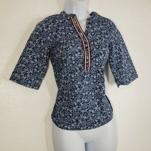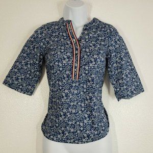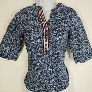 Tommy Hilfiger Womens top XS Petite V Neck Blue Paisley Blouse