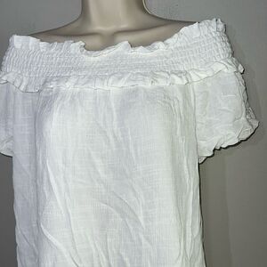 Tommy Hilfiger Women's Blouse White Top Off The Shoulder Ruffled XS