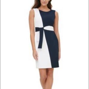Tommy Hilfiger Womens Navy White ColorBlock sleeveless Tie Waist dress size 4