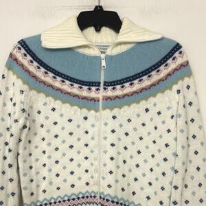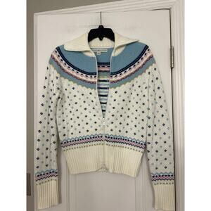 Tommy Hilfiger Wool Cotton Blend Cream Nordic Fair Isle Full Zip Sweater Medium