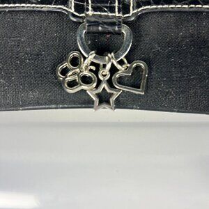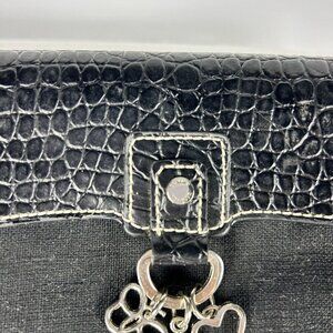 Tommy Hilfiger Wristlet Purse Clutch Black Alligator Embossed Charms Leather