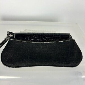 Tommy Hilfiger Wristlet Purse Clutch Black Alligator Embossed Leather Charms