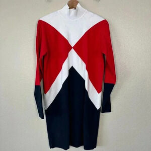 Tommy Hilfiger X Gigi Hadid High Neck Knit Mini Dress Red White Blue Small