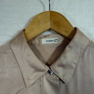 Tommy Hilfiger XS Silk Satin Blush Pink Buttoned Top Romantic Minimalist Office