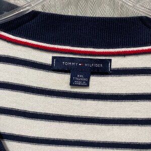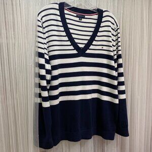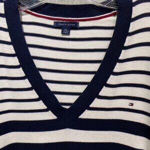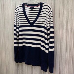 Tommy Hilfiger XXL Navy and White Striped Lightweight Cotton Sweater Preppy