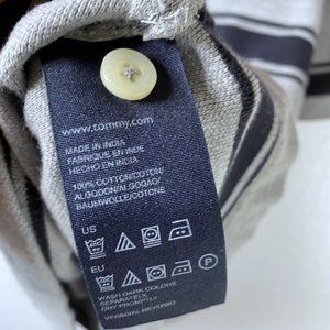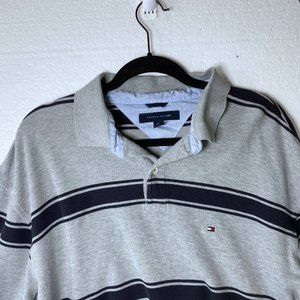Tommy Hilfiger Men's Size XXL Striped Polo Shirt Gray Navy Box Logo Casual Rugby