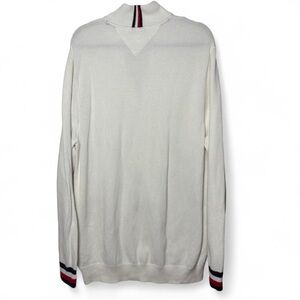 Tommy Hilfiger XXL White Quarter Zip Sweater Waffle Knit Red Blue Trim