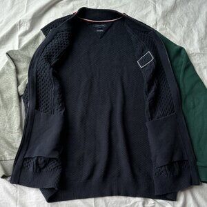 Tommy Hilfiger XXL Zipper Sweater Cable Dark Blue Luxury Blend Cotton