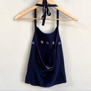 Made in 1999, navy blue, cute flowers on front, tie at neck, open back