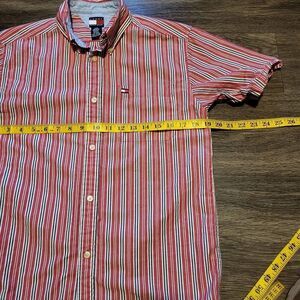 Tommy Hilfiger Y2K Style Short Sleeve Button Up Shirt with Button Down Collar Mens Size Large