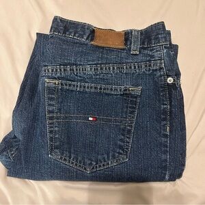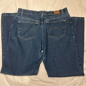 tommy hilfiger jeans women, size 12 jeans, straight leg denim, mid rise jeans, 100% cotton jeans, dark wash jeans, vintage y2k tommy