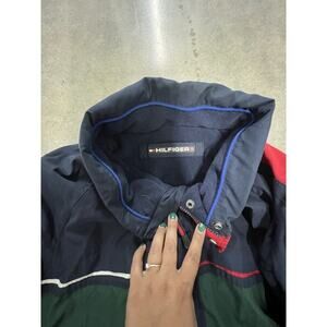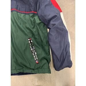 Tommy Hilfiger Y2k Jacket XXL Blue Green Red Fleece Lining Reversible. Condition is Pre-owned. Shipped with USPS Ground Advantage.
