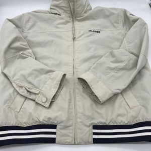Tommy Hilfiger Yachting Jacket Men’s 2xL Full Zip Nylon Tan Hood Blue Trim