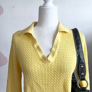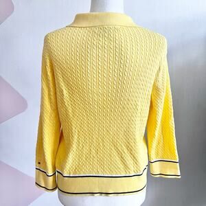 Tommy Hilfiger Yellow Cable Knit Sweater, Preppy Y2K Classic Retro Coastal Large