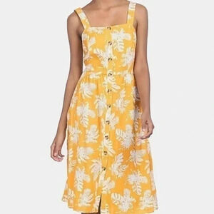 Tommy Hilfiger Yellow Floral Print Fit & Flare Linen Blend Dress Small