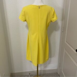 Bright yellow mini dress with white accents. Short sleeves. Elegant and stylish.