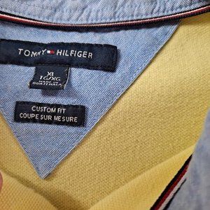 Tommy Hilfiger Yellow Polo Custom fit Size XL 100% Cotton W/ Embroidered Logo. It even still has the spare button.