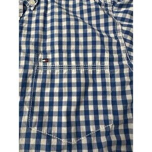 Youth boys, Tommy Hilfiger size medium 12/14 blue and white checkered, button-down dress shirt. Made of 100% cotton.