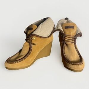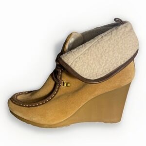 Tommy Hilfiger Zaria Platform Wedge Boots Women's 8.5 Tan Suede Sherpa Lined