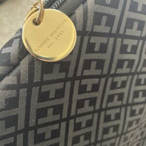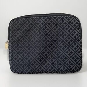 Tommy Hilfiger Zip Around Tablet Case TH Pattern Black Gray Gold Logo 10.5” x 8”