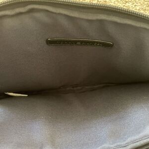 8 inch x 10.5 inch. For a tablet. Zippered sleeve /pouch. Zipper hardware is gold tone. See pics. Logo design repeats on cover. See pics. Soft case thats flexible, bendable yet padded for protection. Ask questions before purchase!