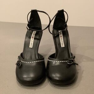 Tommy Hilfiger black leather, round toe, ankle strap,high heel