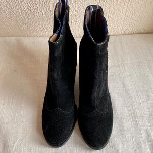 Tommy Hilfiger black suede wedge booties with brogue detailing Size 9.5