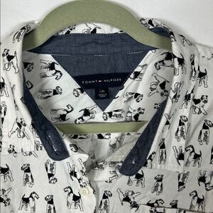 Tommy Hilfiger black white long sleeve button down with terrier dog print size L
