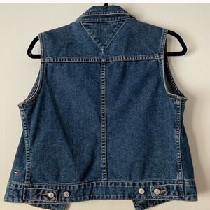 Tommy Hilfiger sleeveless denim vest, size Medium. Gently used, but in great condition. Two pockets in the front. Perfect worn with everything.