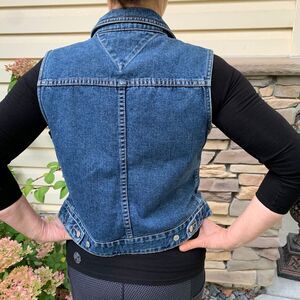 Tommy Hilfiger blue sleeveless denim vest, metal buttons, size Med