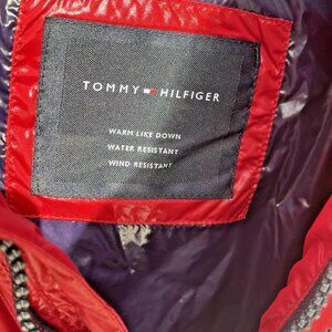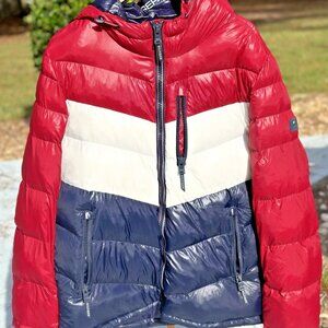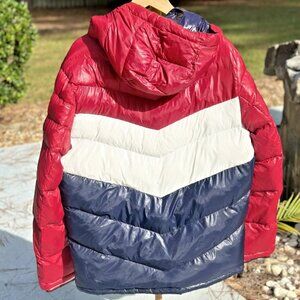 Tommy Hilfiger blue white red coat size medium hooded puffer jacket coat