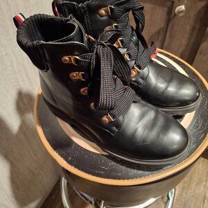 Tommy Hilfiger lace up and zipper boots. Size 4 in women's. Worn very little. Scuff shown in photos as well as some material removal on toe.