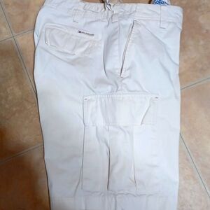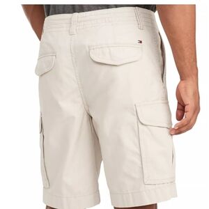 Inspired by utility wear these lightweight cargo shorts have a multitude of pockets and I made from a 100% cotton Featuring plenty of storage space for your wallet phone keys and whatever else you carry on you Daniel these cargo shorts from Tommy hill figure will be your go to pair of shorts all the time with the flat front imported zip fly with the button closure belt loops coggle pockets on the sides extremely a good looking pair of shorts they use iron the color of stone These are a 34" waste Approximately 10" in seam and has approximate rise of 10.75" An excellent condition