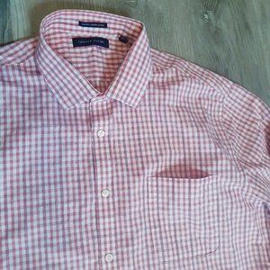 Tommy Hilfiger classic long sleeve red gingham button up mens top XL 17.5 neck