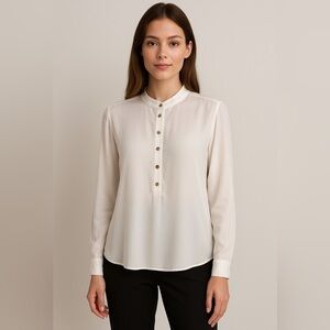 Blouses in great condition, collarless new gold buttons on front and sleeves tunic.