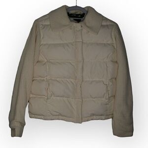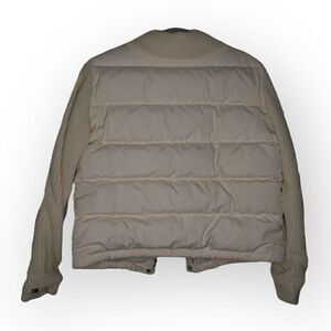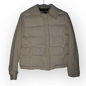 Tommy Hilfiger cream down puffer jacket with knitted sleeves front zip size medi