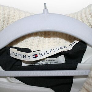 Tommy Hilfiger cream puffer jacket with knitted sleeves front zip size medium