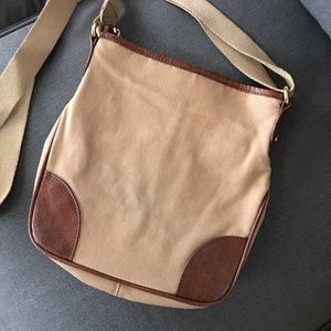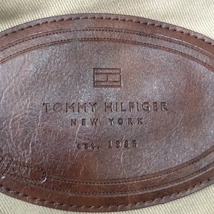 Tommy Hilfiger crossbody bag in light brown with leather & gold accents.