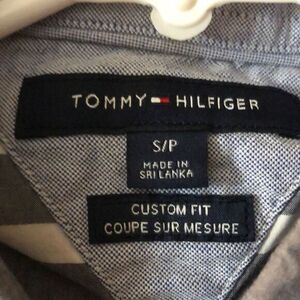 Tommy Hilfiger menswear button front custom fit casual shirt. Pit to pit 21” Shoulder seam to bottom hem 28”. Size Small