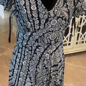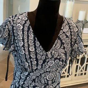 Tommy Hilfiger flutter short sleeve dress, navy/shite with floral pattern, 4