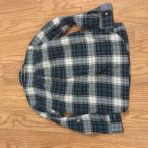 Tommy Hilfiger half-button plaid flannel shirt with tab roll-up sleeves, M