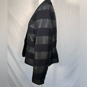 Gorgeous Tommy Hilfiger jacket. Fabric is dark blue with thick stripe of dark blue metallic thread. Fully lined with sparkly buttons. Great condition. Pictures don’t do it justice.