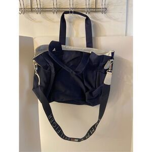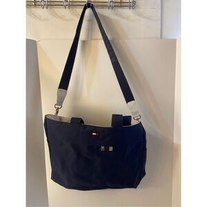 Tommy Hilfiger Spellout LapTop Messenger Bag Navy Pin Stripes. measures 17x13" new.