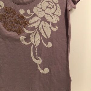 Short sleeve tee in mauve with white stenciled design and mauve colored beading. Size s/p. New never worn